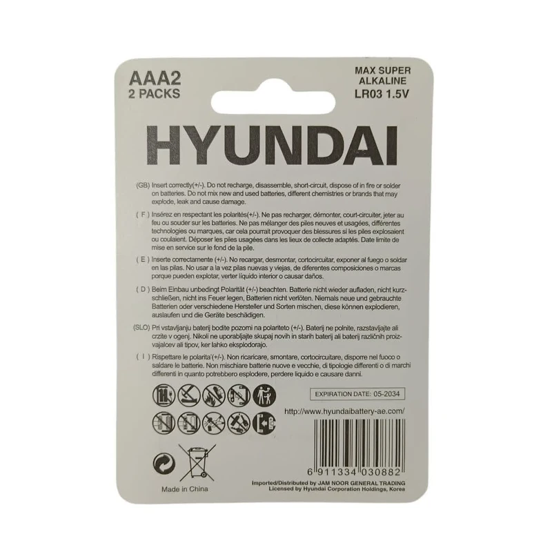 باتریهای قلمی و نیمقلمی هیوندای مدل Super Max Alkaline با هدف تأمین انرژی پایدار و طولانیمدت برای انواع دستگاههای خانگی و دیجیتال طراحی شدهاند. استفاده از فناوری آلکالاین پیشرفته در این باتریها باعث شده عملکردی قابلاعتمادتر نسبت به باتریهای معمولی داشته باشند و در استفاده روزمره، نیاز به تعویض مکرر باتری را به حداقل برسانند.